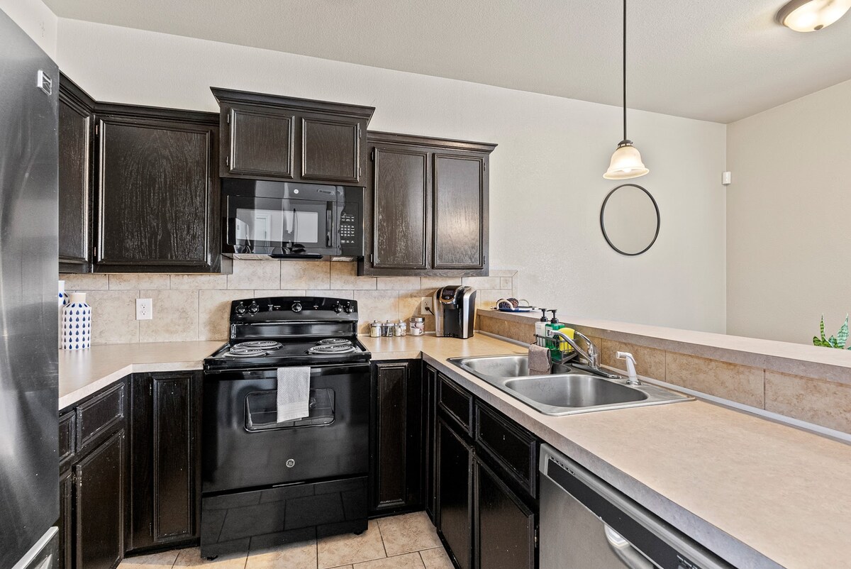 Cozy 2BD/2BA duplex with 2 queen beds, 1 full airbed, crib, and private garage. 5 Minutes from Fort Hood, Killeen Mall, restaurants, shopping, and convenience stores. Walk to Enterprise/gas station/restaurant, just 14 minutes from Killeen Regional Airport, ~1hr from Austin airport. Enjoy a bright living space, full kitchen, fast WiFi, smart TVs, and in-unit laundry. Perfect for PCS, TDY, military families, contractors, and extended stays. Housekeeping available upon request for long stays.