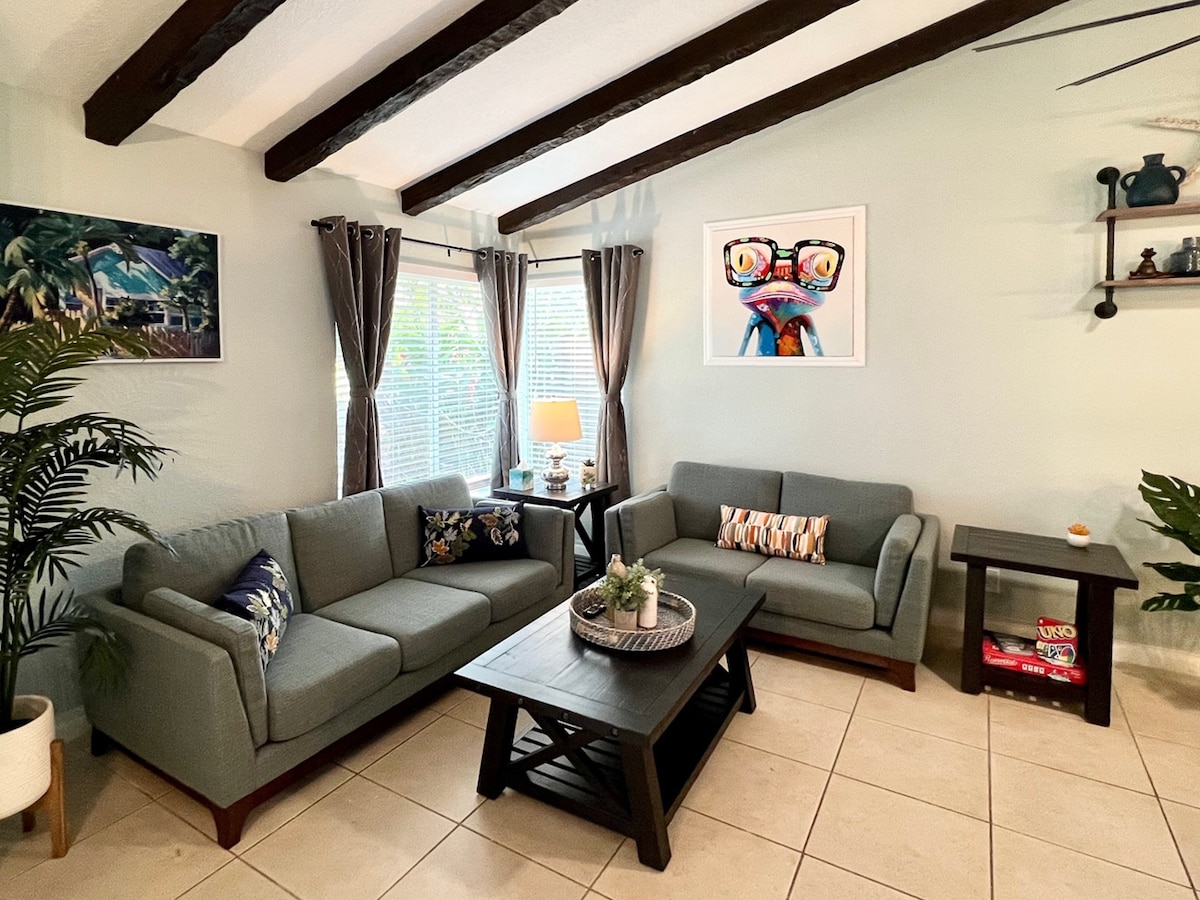 Step into modern Florida living at this newly renovated haven just steps from Wilton Manor's vibrant core featuring The DRIVE and iconic nightclubs: Eagle, Hunters, & Alibi! Unwind in two spacious bedrooms, each featuring King beds and walk-in closets. The full-range kitchen and the cozy living room offer a stylish space complimented by a private yard with beautiful landscaping. On this quiet and peaceful street 5 mins from I-95 and Route 1 & 10 mins from the beach, your ideal WM oasis awaits!