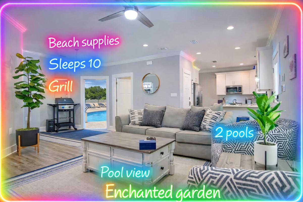 Fully loaded with everything you need for your Gulf Shores Getaway! No roads to cross! Walk right out the double french doors & enjoy a day at the pool or dig your toes in the sand at the beach all within 100 steps! Private beach access! You never have to fight for a beach spot! - Family Friendly! Perfect for 1-2 families - Newly updated 3 bedroom/3 bath (all new furniture in May of '22) - Spacious open living area - 2 Huge Master King Bedrooms - Bunk room for kids - Fully stocked kitchen