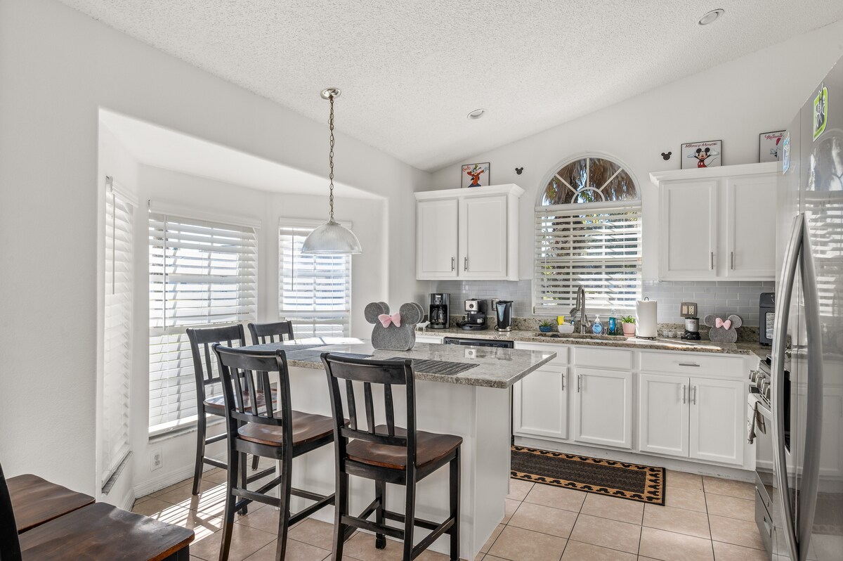 Welcome to your Orlando getaway! Ideally located just 10–15 minutes from Disney, this home offers the perfect mix of comfort and convenience for the whole family. Enjoy your private pool with BBQ, spacious open-concept living areas, and beautifully themed bedrooms kids will love. Located in a resort with top-rated amenities, you’ll have full access to a clubhouse just a 7-minute walk away, featuring a pool, lazy river, gym, and more—perfect for relaxing and creating unforgettable memories.