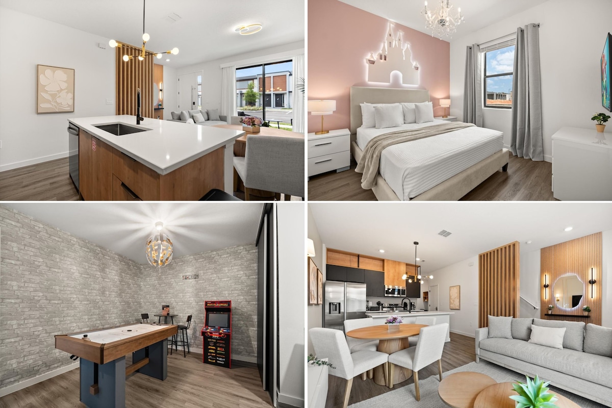 Stylish, family-friendly four-bedroom townhome + private pool in exclusive Champions Gate Resort. Enjoy ALL-ACCESS amenities including two Clubhouses with water parks, lazy river, gym, tropical bars & restaurants, plus NEW pickleball courts, PGA golf course, tennis courts, and sports complex. Only 8 miles from Disney World & 11 miles from Universal Studios, ideally located for Orlando’s best attractions! Sleeps 10, with fully equipped kitchen and laundry. Perfect getaway for families & groups!