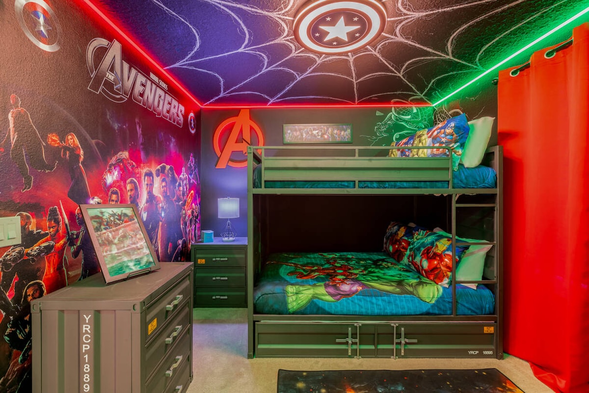 Give your family the Disney Resort experience in this magical townhome located only 10 mins (5 miles) from Disney property. Not only do you have access to your own personal hot tub, you will have access to the clubhouse which includes two pools, a fitness center, and a restaurant. This home will fit all your Disney needs with artwork from all your favorite movies, a castle themed primary bedroom, and a Mickey Mouse kids bedroom with twin beds. This home fits 6, including a pull out bed couch.