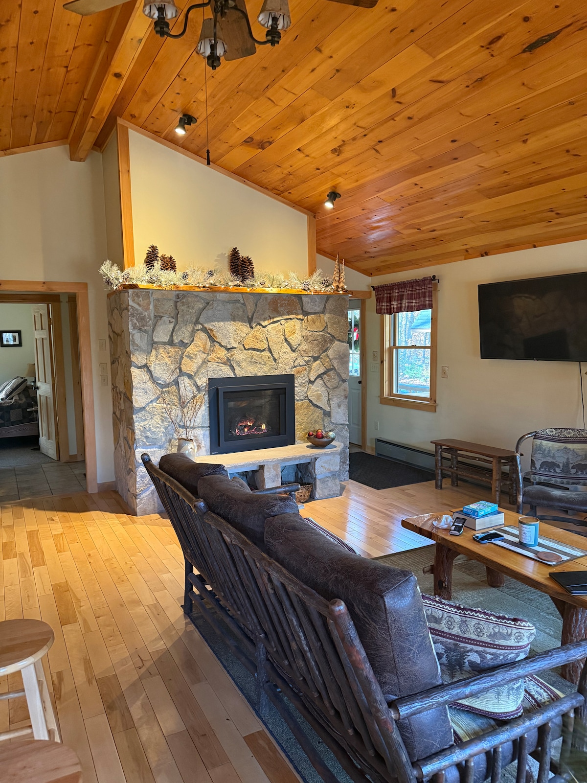 Our beautiful ski-in/ski-out four season chalet on 1+ acres at Titus Mountain Family Ski Center has spacious rooms with high ceilings and a relaxing, rustic charm with scenic mountain views in the autumn/winter months and a short ski/walk path direct to lifts. Or you can stay warm & cozy by a wood burning fireplace, enjoy the outdoors on a large porch, or take a short 5 minute walk to the Upper Lodge. Search Youtube for "Titus Mountain, Malone Rental Ski In - Ski Out" for a video walk through.