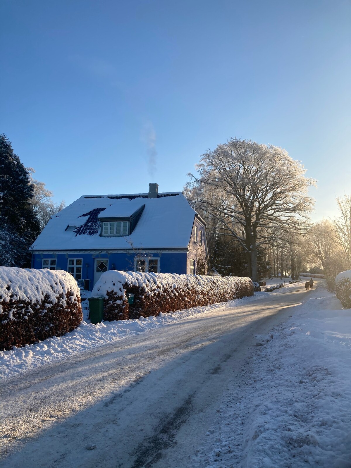 The Blue House Welcome Small quiet apartment on the 1st floor in the cozy village of Ølsted, - out in the countryside with lots of nature - stars, birdsong, cows with horns and chickens in most gardens Several nice walks in the area 15 min to Svannige Bakker/Bjerge 20 min to the Harbour Bath in Fåborg 25 min to the Zoo in Odense Private entrance via external staircase Bathtub Cozy wild garden with several lovely coffee spots