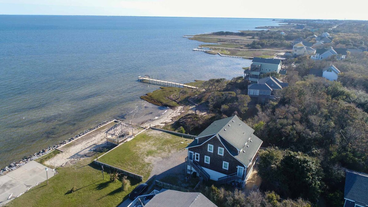 Perfect for boaters, fishermen, windsurfers, and anyone else who enjoys waterfront living! Enjoy beautiful sunsets and a panoramic view of the Pamlico Sound. Boat access to the sound with a boat ramp at Scotch Bonnet Marina and Gift shop at end of the private street. Easy sound side launching for kayaks or the ability to wade in the water. Minutes away from the Inlet. Only a couple of miles from off road beach access. Great fishing from the dock! This is one of three units available.