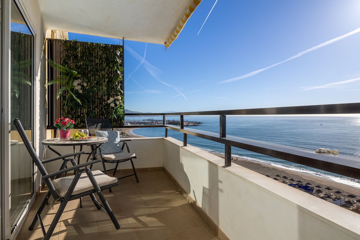 Beachfront apartment in Carvajal, between Benalmádena and Fuengirola. Enjoy spectacular ocean views from the living room and the sunny terrace, perfect for breakfast or relaxing at sunset. Ideal for couples, it has 1 bedroom, equipped kitchen, full bathroom, air conditioning in living room and bedroom, fast wifi and free private parking. A few meters from the beach, train station and all the services for an unforgettable vacation on the Costa del Sol