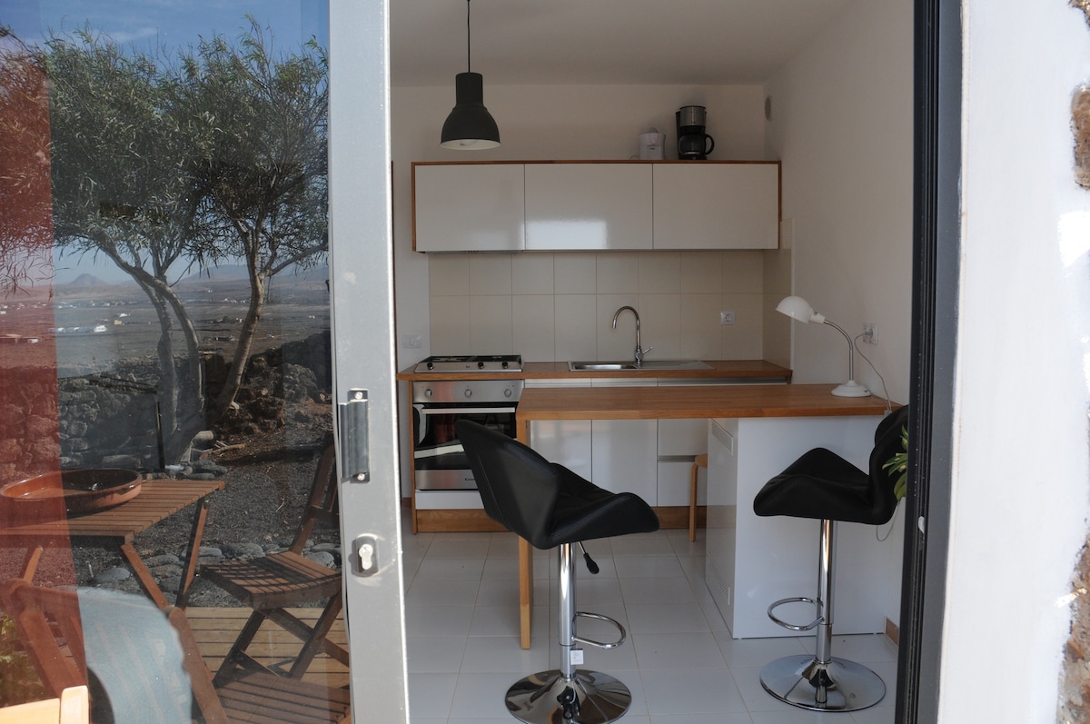 Experience tranquility and nature in a modern loft with a volcanic panorama. New building 2025, stylish furnishings, king size bed, designer bathroom, bamboo kitchen, high-speed Wi-Fi & smart TV. Special highlight: a large roller door opens the room to the volcanic landscape – including sunrise from the bed. Only 10 min. to the most beautiful surfing & swimming beaches, 5 min. to restaurants & shops in Lajares. Ideal for couples, solo travelers & workation.