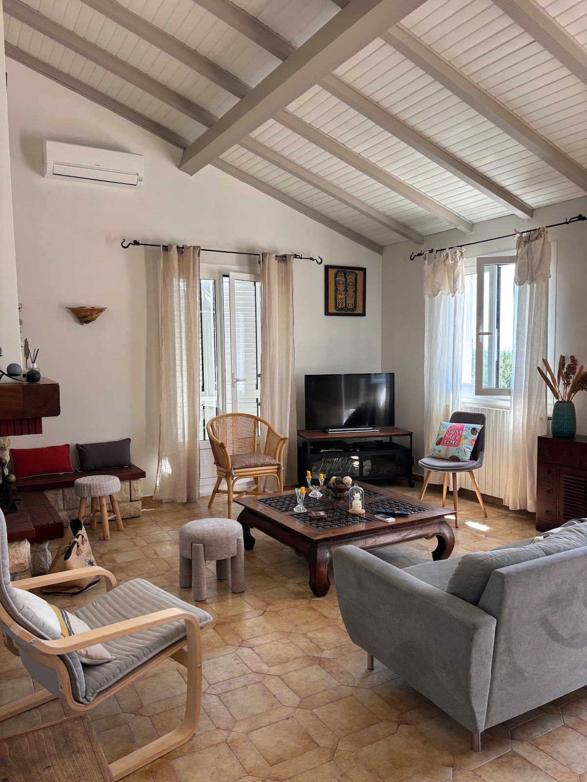 Our villa is located in the municipality of Furiani, surrounded by terraces; it offers numerous views of Elba Island, the Biguglia Lagoon, and the village of Biguglia. It is ideal for 6 people. It comprises 4 bedrooms and a bathroom with a walk-in shower and double sinks. Separate toilets with hand basin. A large dressing room with laundry The accommodation is air-conditioned and you will have access to Wi-Fi, Canal+ and Blu-ray DVD.
