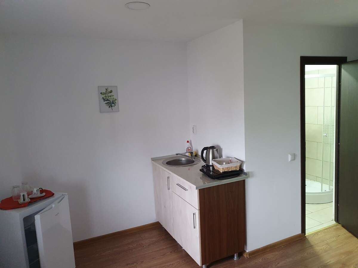 The studio is located in the city center, with shopping centers, shops, promenade, etc. located on the 1st floor of a four-storey building, renovated.