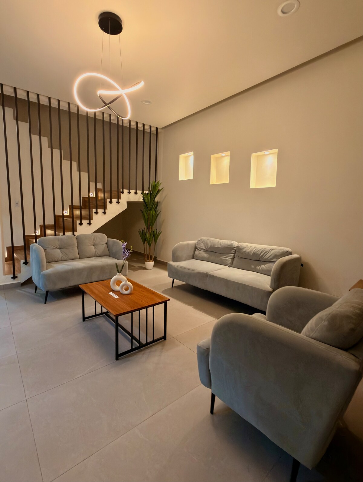 Loft-style accommodation in downtown Tuxtla Gutiérrez, ideal for two people looking for comfort and style. The space combines modern and cozy decor with warm colors and designer furniture that create a relaxing and comfortable atmosphere. Located within walking distance of restaurants, shops, and cultural sites, it offers the convenience of being close to everything to make the most of your stay.
