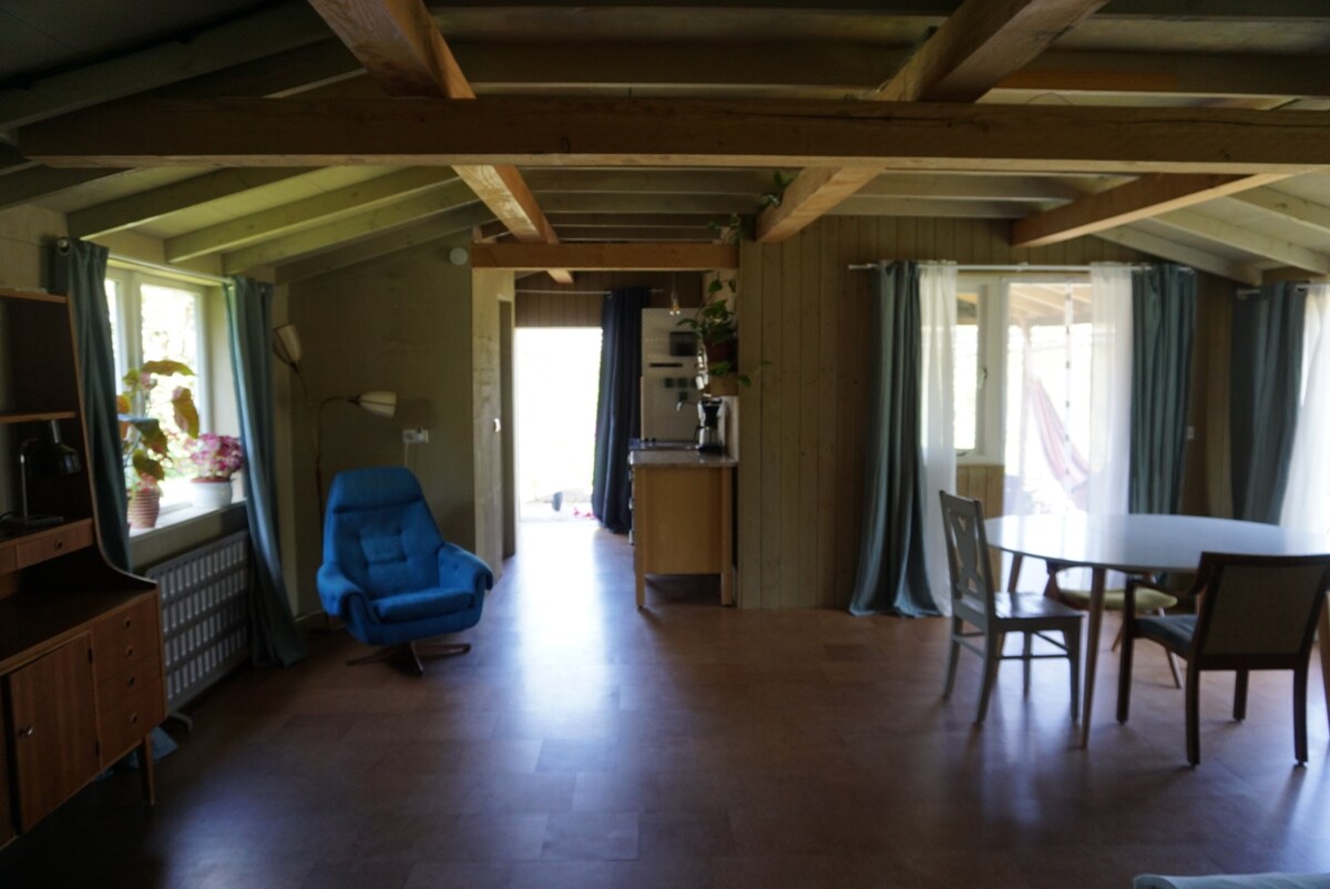 An atmospheric suite with a free entrance, where the hayloft was once of this 1878 farmhouse. The guesthouse has one bedroom with a double bed, a seat and a beautiful view of the garden and the surrounding greenery. There is a separate room for breakfast and a spacious private bathroom with bath and shower. Guests have access to the entire upper floor, with free entrance. There is no cooking facilities, but there are no cooking facilities nearby, but there are no cooking facilities nearby. And accommodates 2 adults.