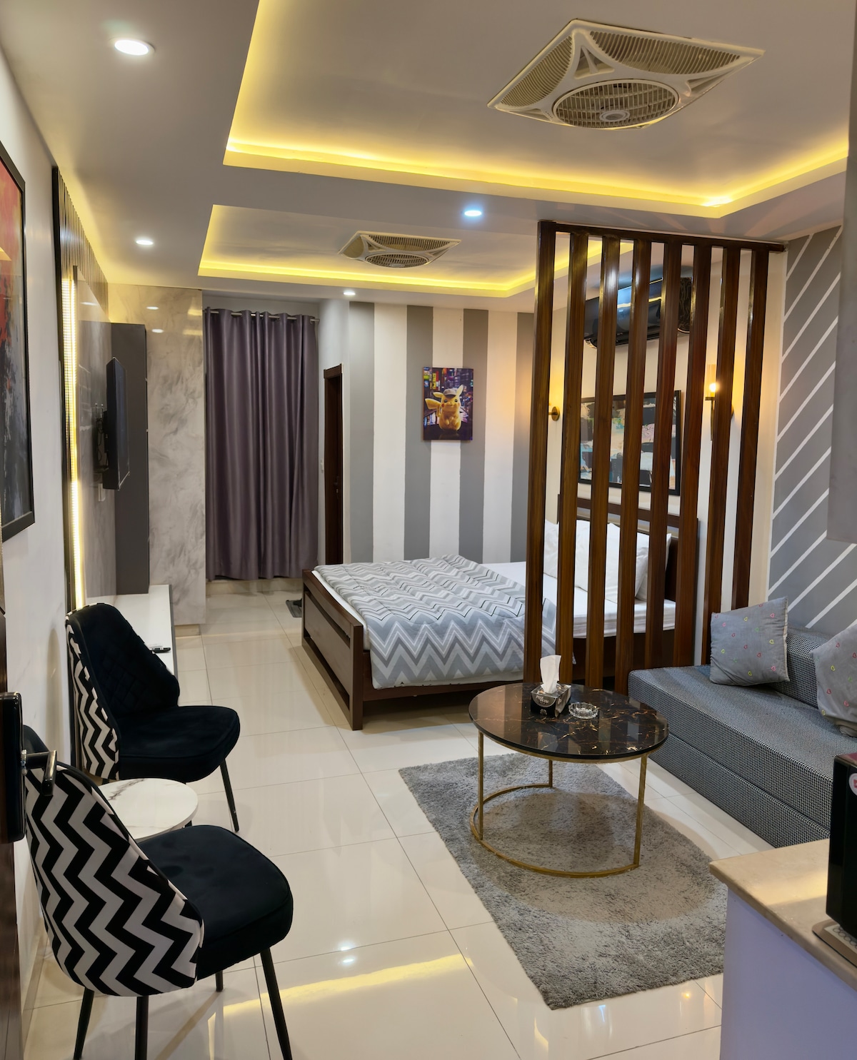 Residence-Inn | Apartment Near Airport & Motorway Stay in a modern stylish studio just minutes from Islamabad International Airport & Motorway. Perfect for business travelers, solo guests, and couples, our apartment offers high-speed WiFi, smart TV, a fully equipped kitchen, & secure parking. Enjoy a seamless check-in experience, a clean & well-maintained apartment, & a prime location. We’re committed to making your stay comfortable and memorable. Book now for comfortable & hassle-free stay!