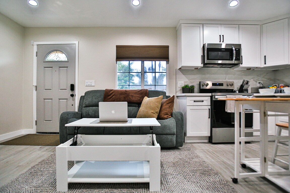 Welcome to our charming studio nestled in the heart of Midway City. Perfectly designed for comfort and convenience, this stylish retreat offers everything you need for a memorable stay. Step into a cozy and meticulously curated space, where modern amenities meet thoughtful touches. The studio features a comfortable queen-sized bed. The compact yet well-equipped kitchenette invites you to whip up your favorite meals, complete with a dining area for enjoying them in style.