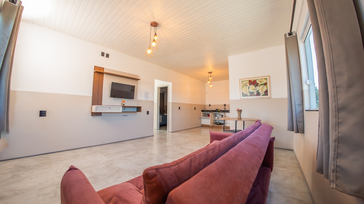 Elegant and perfect accommodation for couples. Located in a new and ecological building, with an elevator and underground parking. Located in the center of Garopaba, close to the beach, markets, pharmacies and services. New, spacious, ventilated and well-lit apartment, with custom-made furniture and a full kitchen, ideal for preparing a special meal or a good breakfast. It allows you to enjoy good restaurants and the movement of the city on foot, but in a quiet and peaceful space.