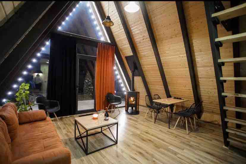 The cottage is located right on the riverbank and features an open balcony with views of the river, the forest, and QarUp. In addition to a double bed, the cottage includes a fold-out sofa that can accommodate 2 more guests. Breakfast is also included in the price.