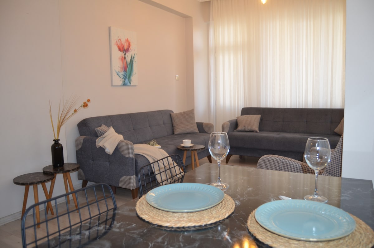 Hello, Our apartment, located in Antep's most luxurious İbrahimli region, one of the safest areas of the city, has a capacity of four people. There is a double bed, a single bed and a sofa in your home. All your needs such as a large balcony, air conditioning, high-speed internet, fully equipped kitchen, oven, dishwasher, washing machine, vacuum cleaner, hair dryer, towels and iron have been considered. We are always ready to provide the best service to our valued guests.