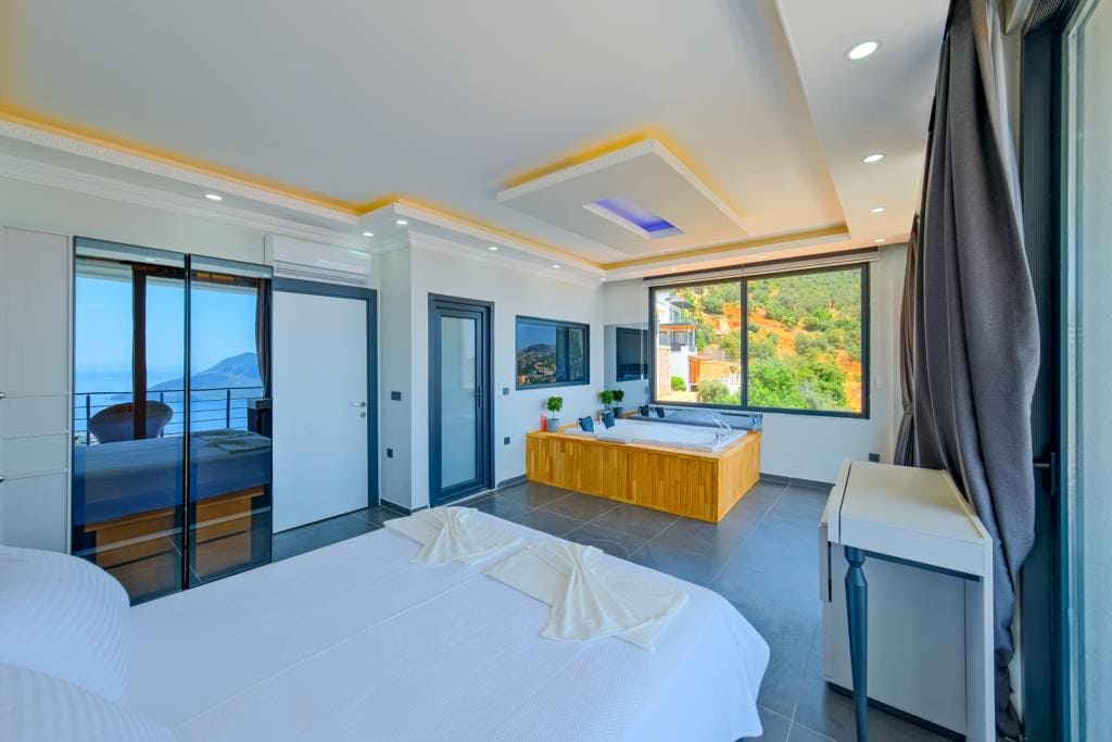 Kalkan Dream Villa A welcome pack is provided upon arrival. Modern, spacious, and thoughtfully furnished, Kalkan Dream Villa offers a serene escape with a heated infinity pool, a separate kids’ pool, and sweeping Mediterranean views. Designed for comfort and style, it’s perfect for romantic getaways, families, and groups of friends. Unwind by the private pool or enjoy the jacuzzi in the master bedroom for a truly relaxing stay. Tourism Rental Permit Number: 07-1277-1