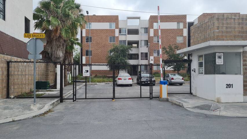 Relax with your family, partner or friends in this quiet and safe, fully-equipped accommodation, located in a private residential area in Escobedo NL. It has controlled access to the neighborhood, 24-hour surveillance, a park with children's games and a soccer field inside. A few meters away there are restaurants, a doctor's office, dry cleaner, laundry, convenience stores, a linear park, hospital service 1.5 km away and shopping centers 2 km away.