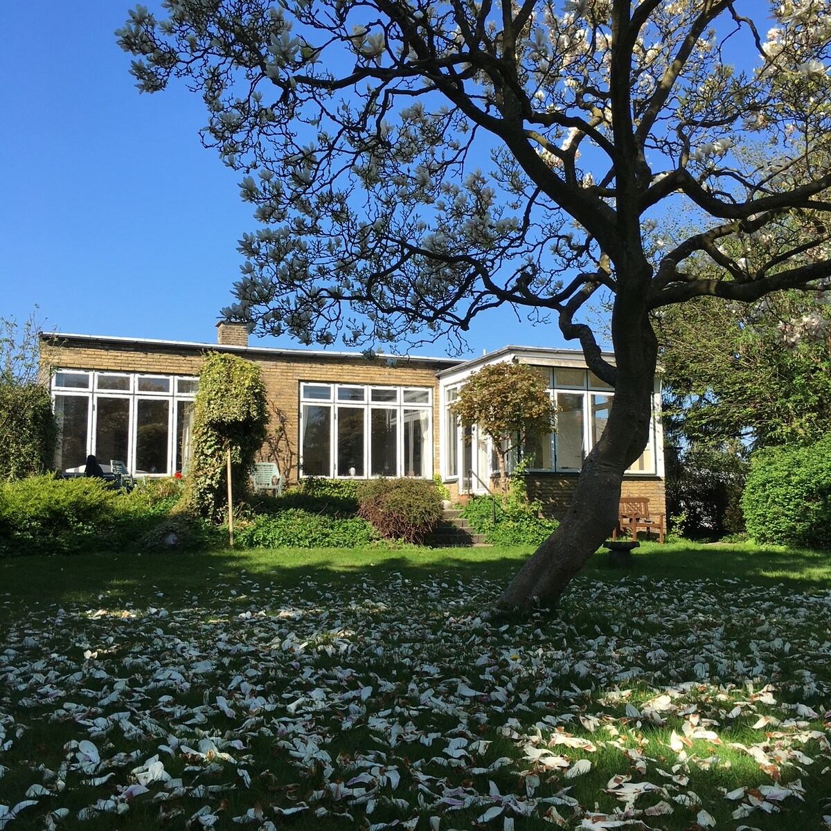 Modernist house with a charming and private garden. Wonderfully located very close to the city, reachable by bike or s-train. Our place is decorated with furniture and art that we love and the lush garden is the perfect setting for family time. With 2 km to the beach, 3 km from Nørrebro and Østerbro and 6.5 km from city hall, this is the perfect setting for a family trip to Copenhagen. Enjoy The Beverly Hills of Copenhagen.