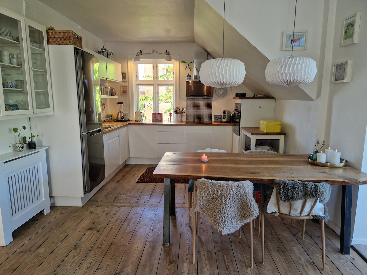 Your family will be close to everything when you stay in this centrally located home. 2 min to train station directly to Copenhagen in 15 minutes. In quiet scenic area, with many shopping opportunities. The apartment is located in the same building as the landlord, so there is easy contact if you need help or various questions. 80m2 divided into 3 rooms. With its own courtyard. Nice kitchen/family room. Everything is newly renovated. Access to washing/drying. Scenic area. Free parking.