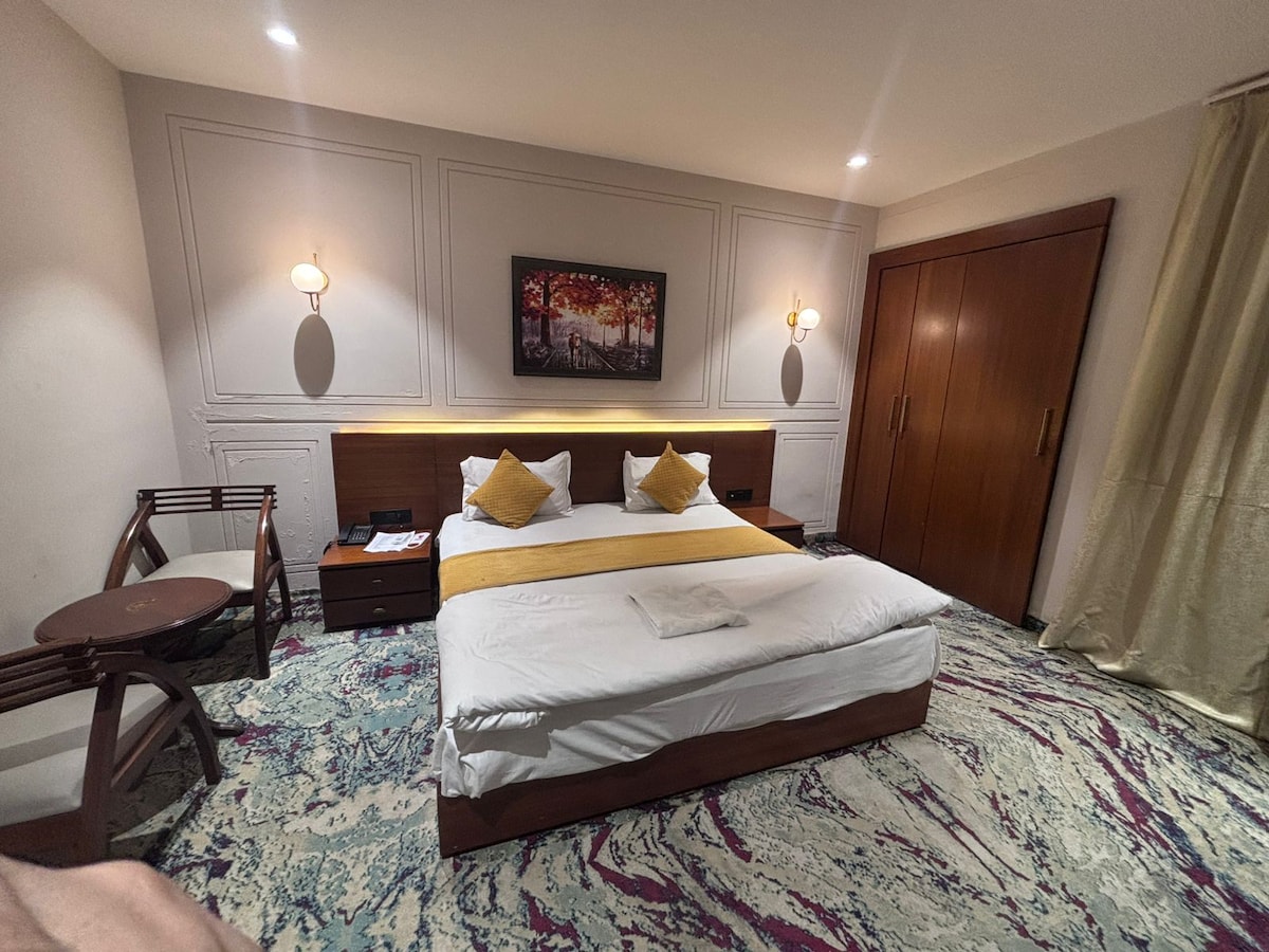 Luxurious 1 Bedroom Apartment, independent kitchen & all amenities, WiFi, Heaters, HD TV with Satellite Connection, Air Conditioning, R.O. Water System, Cookware & Kitchen Utensils, Crockery & Cutlery, Refrigerator, Power Backup & Daily Housekeeping.