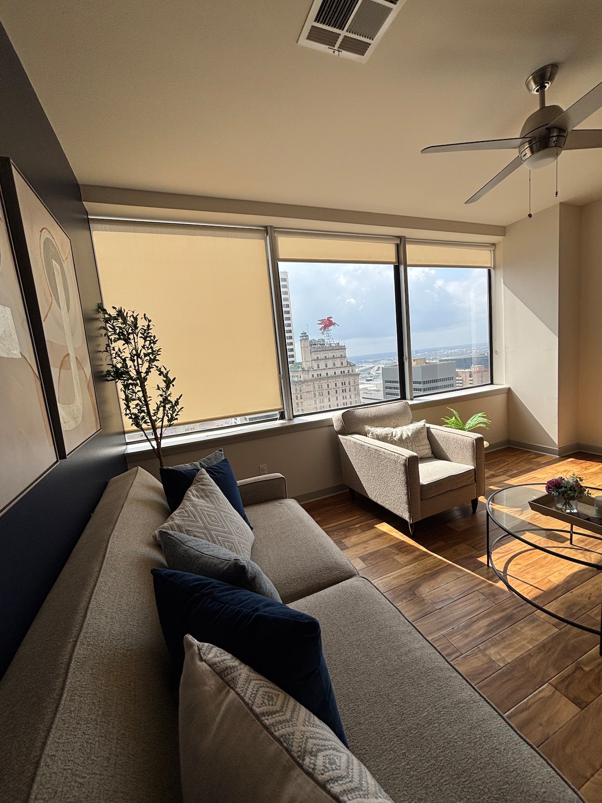 Experience the best of city living in our modern minimalist retreat! Pets Stay Free Enjoy breathtaking views of the city skyline from the comfort of our sleek and stylish high-rise apartment. Located in the heart of downtown, you'll be steps away from top attractions, trendy restaurants, and vibrant bars. Our apt. is the perfect haven for couples, solo travelers, and business professionals seeking a stylish and convenient base for their city adventures.