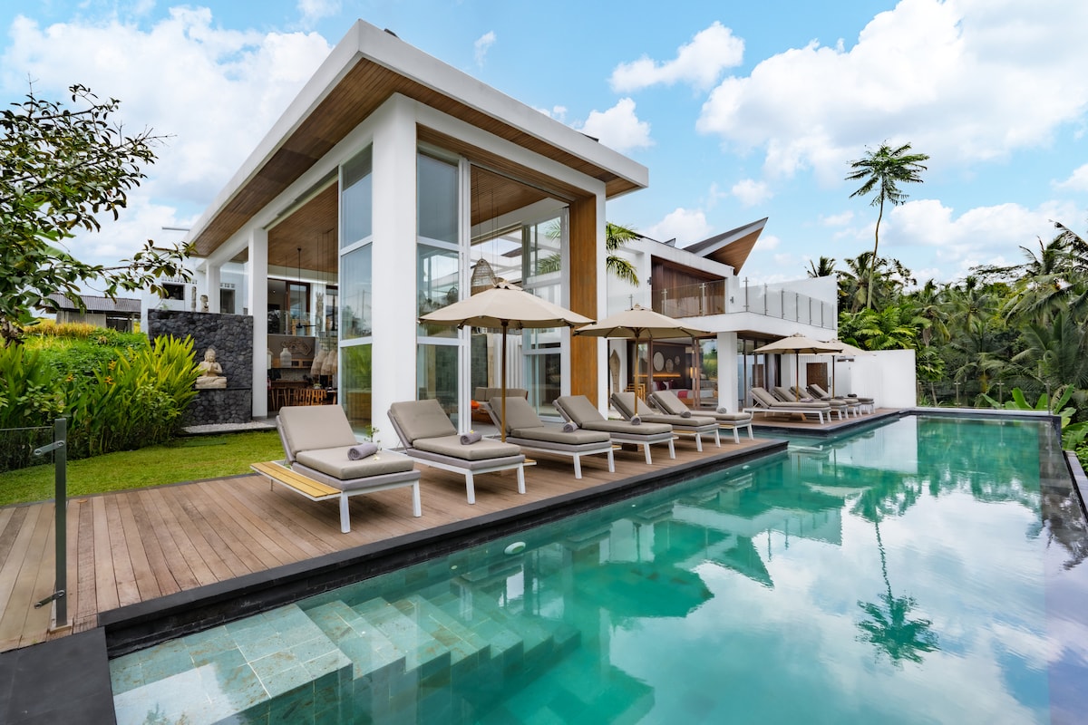 Stunning 5BR Villa - Sauna, Gym, Rice Field Views