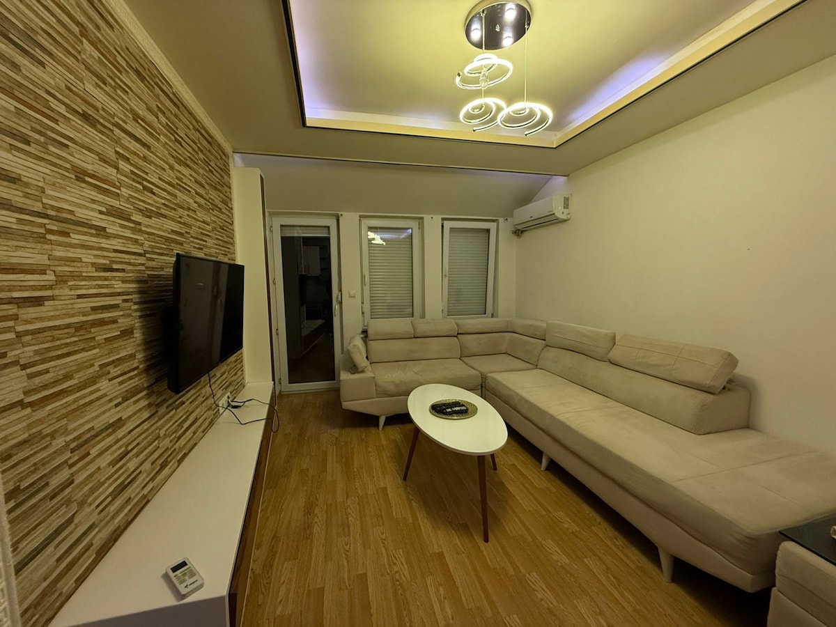 Welcome to your home away from home in the heart of Prizren! This cozy and stylish apartment is the perfect base for your adventures in the city, with a stunning balcony view that will take your breath away. TV QLed, Netflix Game master 4K ultra HD Please note that while this rental is open to everyone, we do require that couples be married. Our building features a luxurious swimming pool and sauna, it's not included in the price you can reserve it even after your arrival