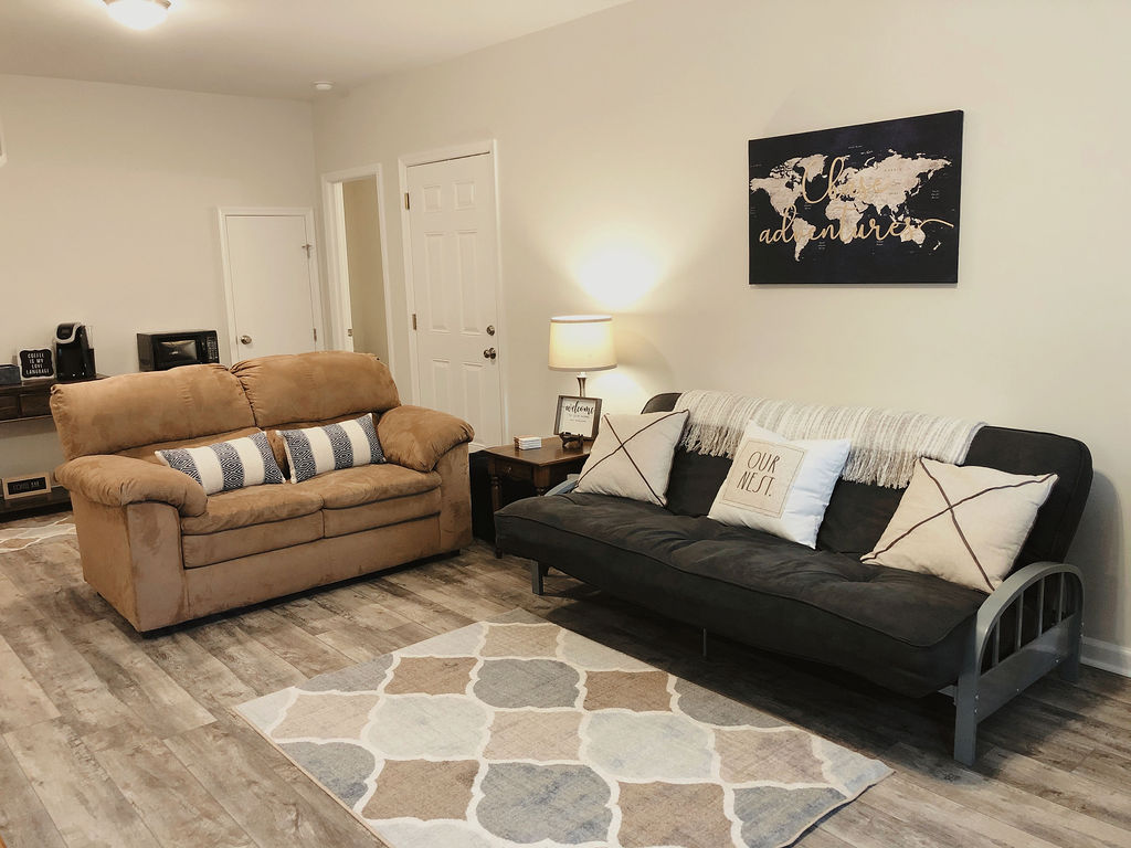 Only 10 minutes from Liberty University and 20 minutes from Downtown Lynchburg! After a day of adventuring, come unwind in our cozy bungalow! With over 800sqft, this newly renovated basement unit is spacious, beautiful, clean and cozy. We are serious about coffee, so we’ve outfitted a great coffee bar. Make yourself a cup using our Nespresso, or go traditional with a Chemex and ground beans. As a courtesy, we provide some light breakfast options - cereal and oatmeal packets.