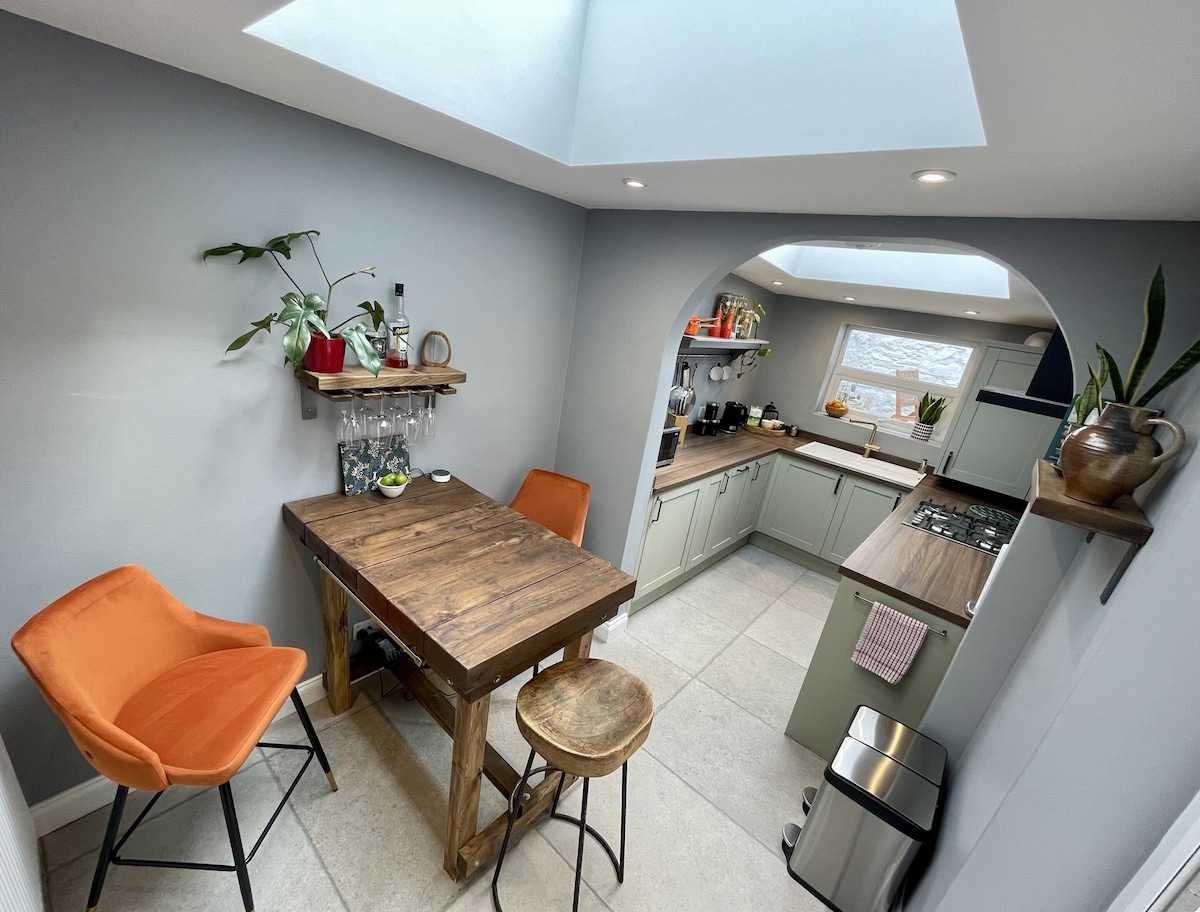Welcome to 'The Light Space' A garden house with own private entrance, garden and off road parking. Comfortable, clean and spacious. Stroll 4/5 mins to central town location. Upstairs: 1 large double bed room and 1 small double bed on a mezzanine next to the bathroom. See layout photo Downstairs: A large spacious, open plan living area with kitchen, dining table, sofa, chair and digital TV, that looks out onto a patio with garden furniture.