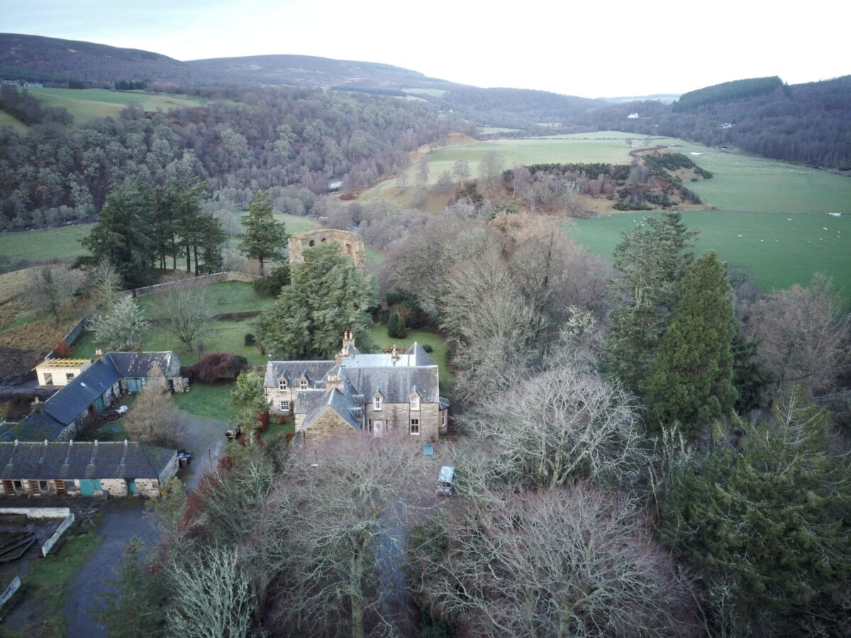 Traditional & relaxed accommodation in the 16th century Scottish tower of our family home. Accessed by a spiral staircase your space comprises 2 bedrooms for 4 people over two floors in a private wing of the castle with bathroom and small sitting room. Full breakfast included. Set in the foothills of the Cairngorm National Park, this is an ideal stop off between Inverness and Edinburgh. Balmoral Castle, Dunnottar Castle, Glamis Castle and St Andrews are nearby. Tennis court available.