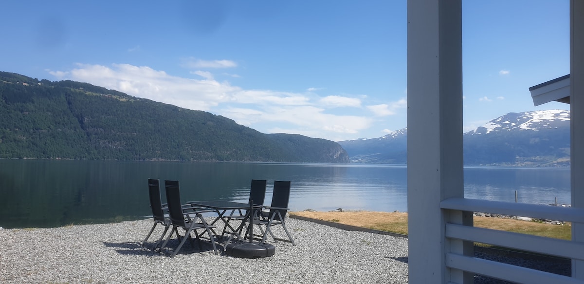 Recharge your batteries at this unique and quiet accommodation. Cozy cabin with a view of the fjord in the village of Tistam v/Utvik. 2 bedrooms with double beds, newer bathroom with shower/toilet, and fully equipped kitchen. Cozy living/dining room with good views of fjords and mountains. No TV or internet, only DAB radio and board games. Large terrace with outdoor furniture. 50 meters from the beach. Please note! Access to the cabin via stairs. Parking at the bottom of the stairs.