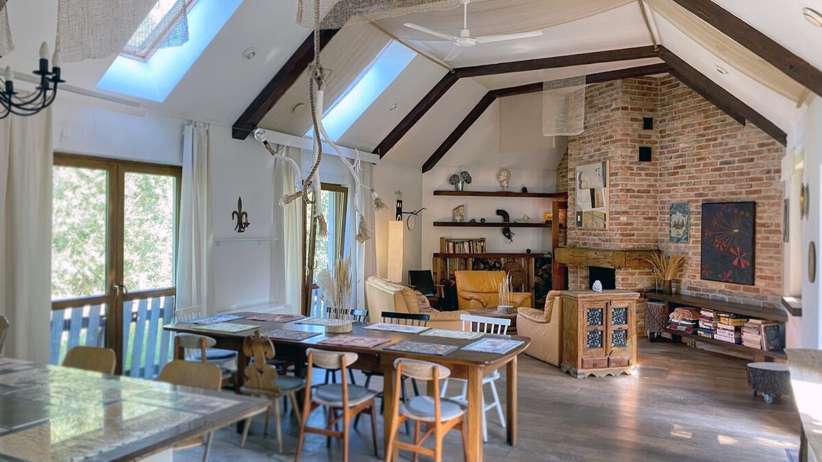 Perfect for organizing an unforgettable celebration like a bachelorette party or a weekend chillout near Warsaw. A hectare of fenced area, two separate living spaces: House and Hermitage, a covered terrace, a covered gazebo among the trees, a sauna and a tub in the garden (extra fee), a swimming pool in summer. In the area: the historic Modlin Fortress, the Wkra Valley Park in Pomiechówek, and kayaking on the Wkra River.