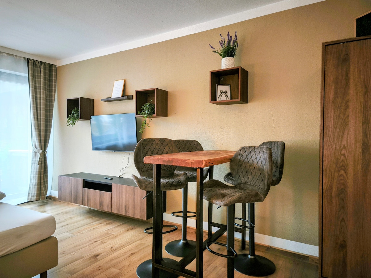The newly renovated two-room apartment is located in the Alpenhotel Dachstein complex above the Alpine town Bad Goisern on Lake Hallstattsee in the beautiful Salzkammergut. Alpenhotel Dachstein is located just 12 km from the historic town of Hallstatt, a UNESCO World Heritage site. The neolithic region of Salzkammergut offers a wealth of opportunities for families such as winter sports, cycling trails winding over clear lakes and of course great cuisine. Try, for example, Hallstatt bacon:-)