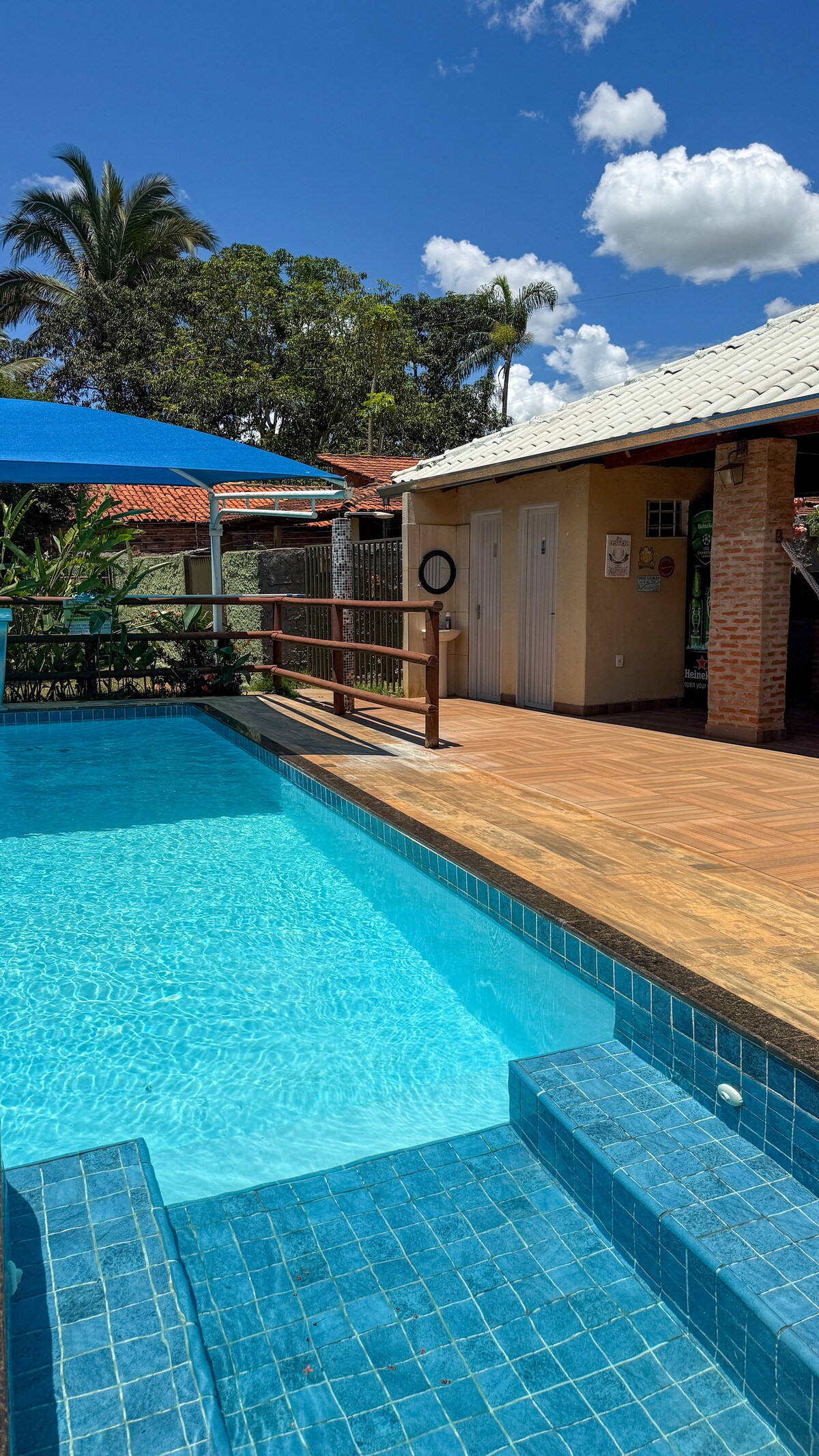 Cozy house with private pool, perfect for relaxing. There are 2 bedrooms, 1 suite with a super hyper king bed and 3 bathrooms, ideal for families or groups. Pet friendly space. Complete Laundry. Full kitchen with several appliances: refrigerator, microwave, blender, sandwich maker, electric pan, processor, mixer, oven, stove, among others. Safe and accessible location, close enough to essential shops, but away from the noise of everyday life.