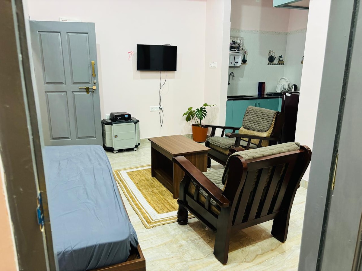 House is in a prime location Gokulam, environment is serene and calm which ensures privacy. House is cool and well ventilated with natural light. Fully furnished with sofa, queen sized bed, study table, wardrobes, Racks, dining table, kitchen utensils to cooks stove, 24 hours hot water, wi-fi, washing machine, refrigerator, balcony, prayer/pooja room and a meditation/yoga room. we will be available 24/7 in a building with a quick access/reply to guest. i make sure guest feels at home.