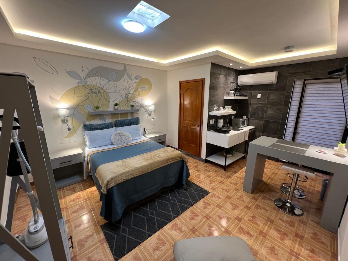 Location A few blocks from Hypermart and Plaza 4 Caminos. Easy access to public transportation. It has A. Conditioning, a cooker, a stove, a minibar. Small balcony. Smart TV. Wifi. Next to laundry and ironing