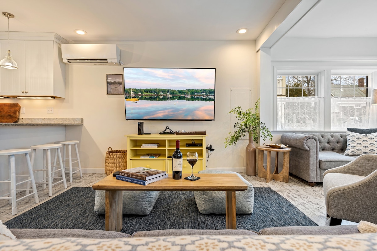 Under 10 min walk to Dock Square, 2 min walk to Kennebunk River. Luxury linens, Casper pillows, SandCloud towels, Malin + Goetz toiletries, well-appointed kitchen and beach chairs included in your stay. 2 bikes & 2 kayaks available. Walk to Colony Beach, bike to Kennebunk Beach. 2 min walk to Perkins Park on the River, steps down to water for launching kayaks. Dock Square is a vacationer’s dream. Stroll along Ocean Ave on the water or grill fresh seafood on the cozy porch. 420 friendly outside