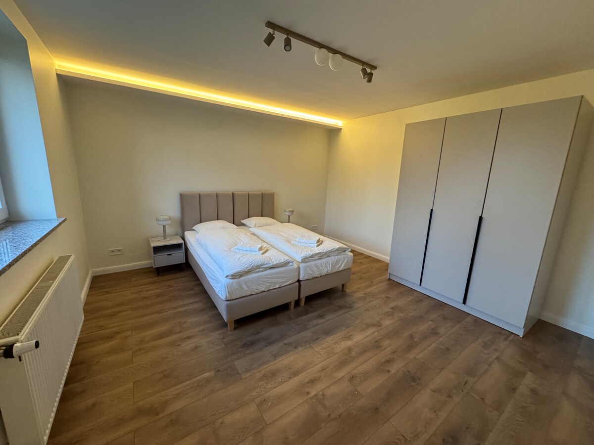 The apartment on the upper floor also has a large terrace and a covered balcony. In this part of Upper Silesia you can also discover / experience: Summer toboggan run 19 km Lake landscape Turawa / Climbing park 18 km Silesia Ring / Airfield (sightseeing flights) 10 km Karolinka Golf Park 10 km Dinosaur Park 19 km Canoe and kayak tour providers 28 km Stubendorf Palace 3 km Oppeln Zoo 20 km Swimming pool 14 km 19 km from boat trips on the Oder 19 km from St. Annaberg pilgrimage site Speedway...