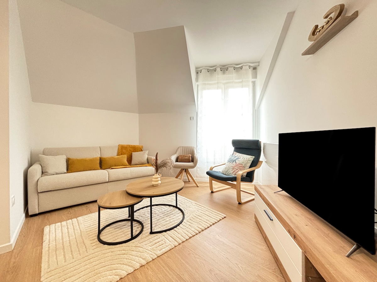 Enjoy the stylish and central VERDE home on the top floor! Ideally located, apartment 100 meters from the RER A for your direct trips to Paris and Disneyland. Very nice two rooms suitable for 4 people, offering quality services and a chic and neat decoration. The shops at the foot of your residence will allow you to fully enjoy a stay for families, couples or groups of friends. The apartment also has a private parking space.