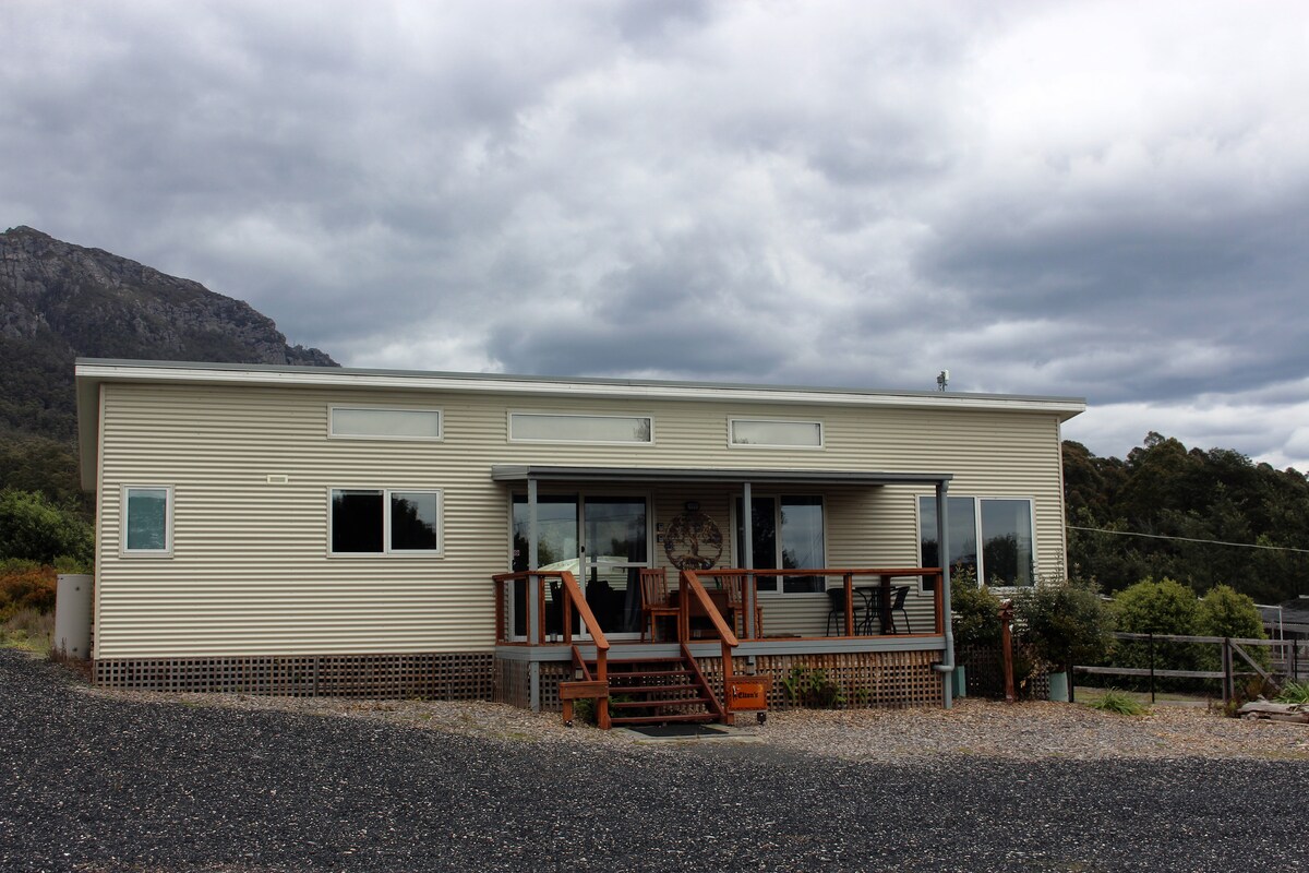 You will love the amazing uninterrupted view of Mt Roland from the cottage veranda - the view changes continuously reflecting different moods of the mountain depending on the time of day/night, the changing seasons and weather conditions - cloud, rainbows, sunrise or sunset, and at times, snow. The cottage is warm and cosy with a real flame gas fire to keep you toasty. This cottage has one king bed and one queen bed with natural fibre bedding and electric blankets.