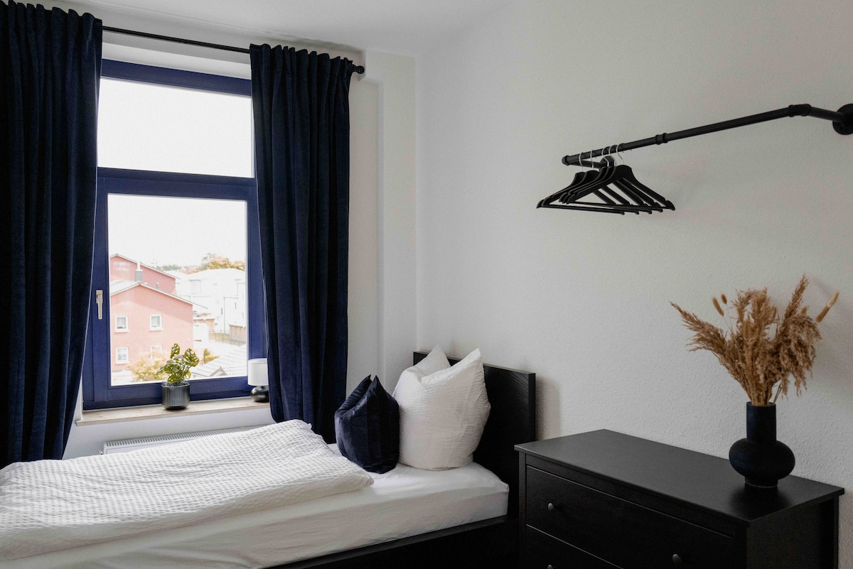 2 Wohnungen direkt nebeneinander, 6 Personen, 4 Schlafzimmer in Wismars Top-Lage! Unsere stylischen Apartments im 2. OG verfügen über alles, was du für einen schönen Aufenthalt brauchst: - 2x Queen-Size Boxspringbetten - 2x Einzelbetten - pro Wohnung ein Smart-TV mit Netflix - pro Wohnung Kaffeemaschine mit Mahlwerk - pro Wohnung eine Küchenzeile - Öffentliche, kostenfreie Parkplätzen in unmittelbarer Umgebung - Super zentral gelegen: Hafen und Bahnhof sind fußläufig in 10 Minuten erreichbar