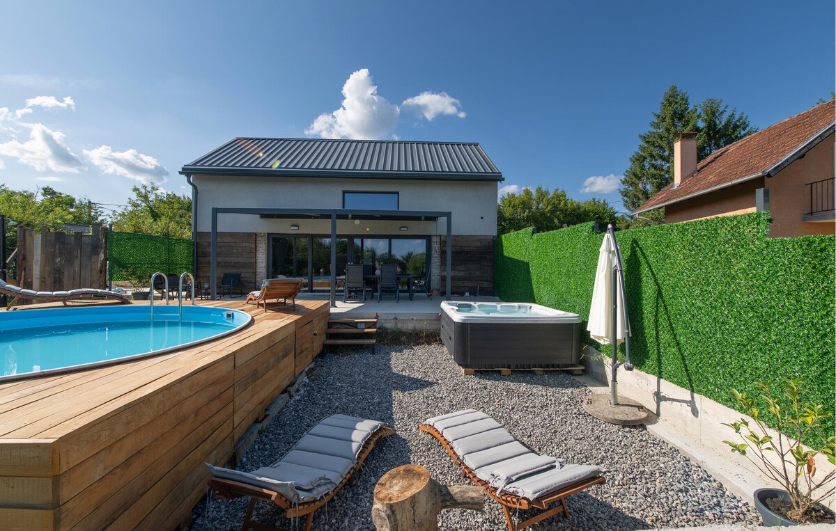 Apartment Aria for five people covers an area of 120 square meters. It is located in the very center of Kutina, in a private house with a courtyard and free parking with lots of greenery.The property has three bedrooms (jacuzzi for five people and Finnish sauna for an additional fee upon prior arrangement with the host), living room with dining area, TV, sofa bed, two air conditioners, fully equipped kitchen with dishwasher, refrigerator, microwave, two bathrooms with washing machine, terrace.