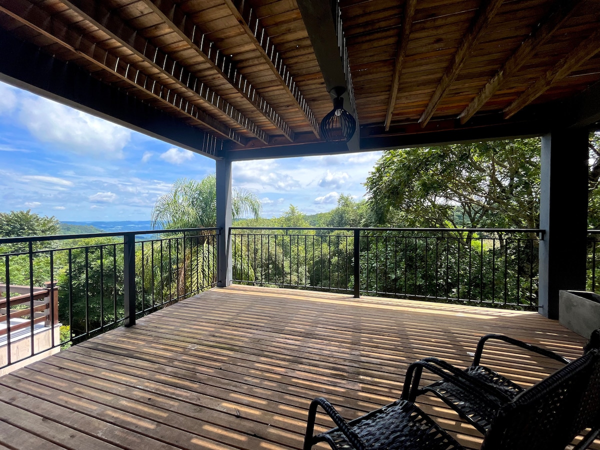 Lose yourself in the beauty of nature and find yourself in the comfort of our cabin 20 minutes from downtown Gramado. Our cabin features: *Welcome basket with coffee items included in the daily rate; *Salts and bath foam included in the daily rate. - Outdoor heated bathtub; - Gas shower; - Air-conditioning (hot and cold); - Picnic kit; - Heated sink; - External fire pit; - Heater; - 4k TV; - Equipped kitchen; - Great view; - Firewood included; - River access.