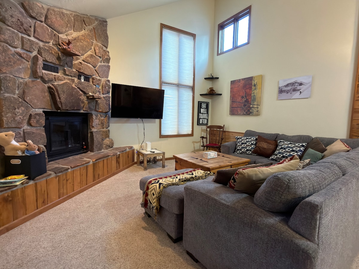 2BR townhome with a loft in a woodsy neighborhood in Winter Park/Fraser. Want a relaxing scenic place to sit by the fire or enjoy Grand County's outdoor adventures? Come stay and enjoy this townhome with access to free shuttle transportation during the winter. Both bedrooms include King beds. The loft includes a daybed that expands to a king bed and the sofa pulls out to a bed. PRIVATE 7 PERSON HOT TUB on patio. Propane Grill, easy access to hiking/biking trails, restaurants, stores, bars, etc.