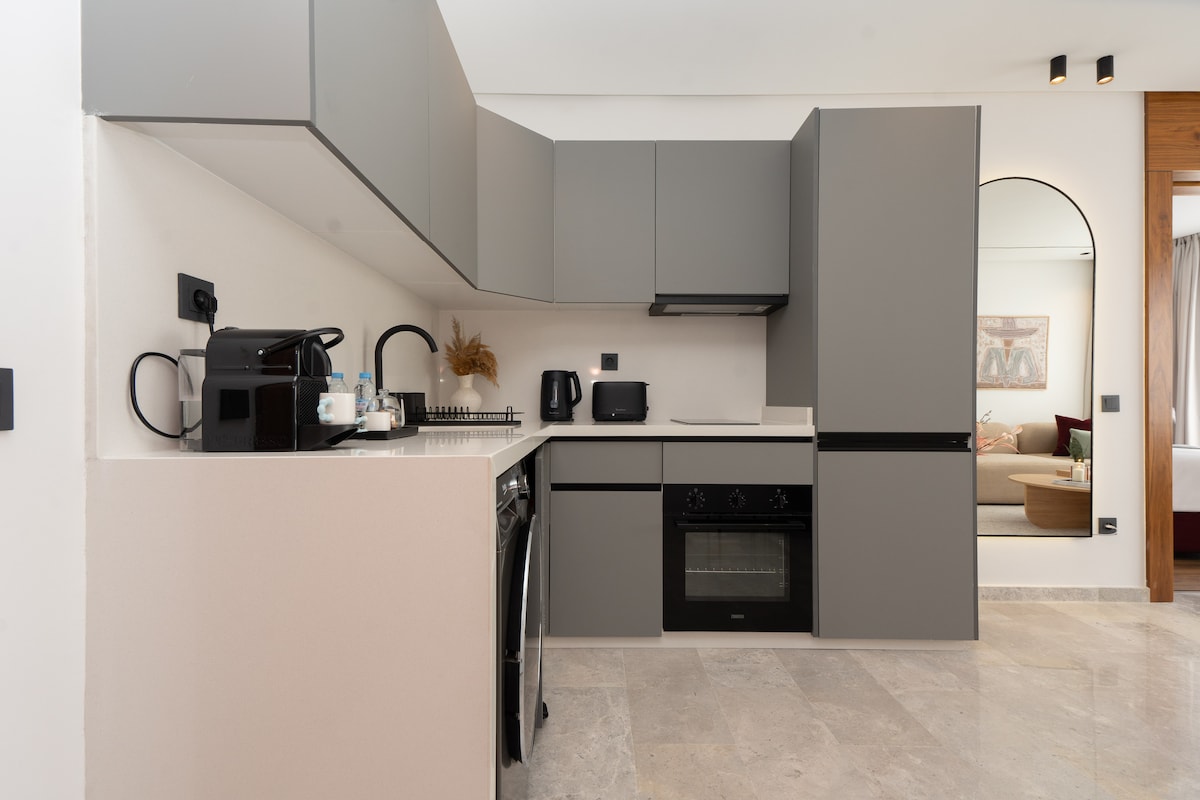 Discover our unique accommodation in the middle of Casablanca. The Solstice residence is new and well secured with 24-hour cameras at the entrance. Well located opposite the market, 5 minutes walk from Hassan II Mosque and Corniche, 3 minutes from the hospital... New and modern apartment with bedroom, living room, dining table, kitchen, bathroom and balcony all equipped. Cleaning provided before and after your visit to offer you a welcoming and elegant accommodation, enough to have a pleasant stay! ☀️
