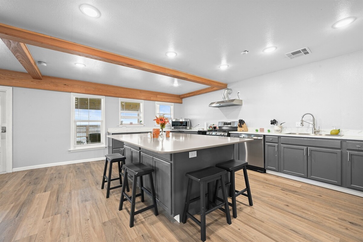 Watch the sunrise over Grand Isle Beach from your gulf front porch, then head down the private path for a day in the surf and sand. This fully remodeled 8-bedroom home gives big groups plenty of space to cook, hang out, and unwind—whether that’s upstairs in the open living areas or downstairs on the covered deck (made for seafood boils and family cookouts). Shops, bars, and restaurants are all within a short walk/drive, making this the perfect beachy getaway spot for the entire crew.