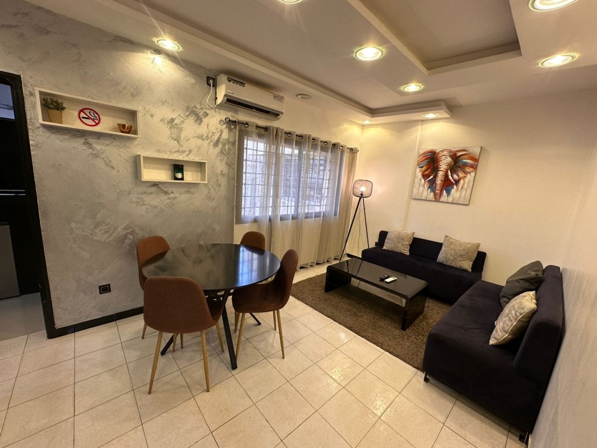 Cozy and well-appointed 2-room apartment in the heart of Dakar on Avenue Khalifa Ababacar Sy. Ideal for a business or tourist stay, it combines modern comfort and a warm atmosphere. You will enjoy a functional space designed for your well-being, with everything you need to feel at home.