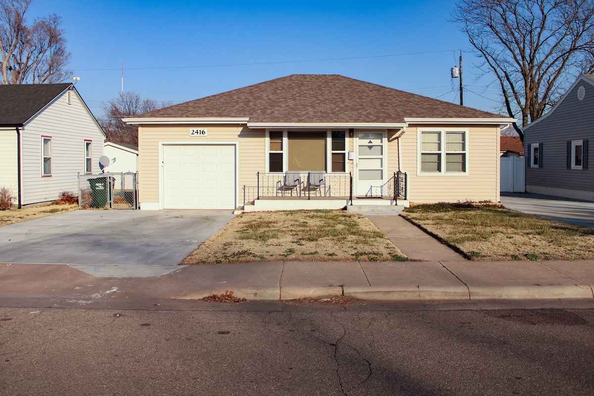 !!!PLEASE DO NOT BOOK A STAY LONGER THAN 2 WEEKS WITHOUT PRE-APPROVAL!!! Be warm. Be welcome. Be at home. Take a short 30 minute drive off Interstate 70 & enjoy a quiet small town stay in this recently renovated charming bungalow. Spend a day exploring our Kansas history with local forts, cattle trails, lakes, churches as well as local & nationally acclaimed museums. Spend the evening enjoying the cicadas & lightning bugs during the summer, the crickets during the fall.