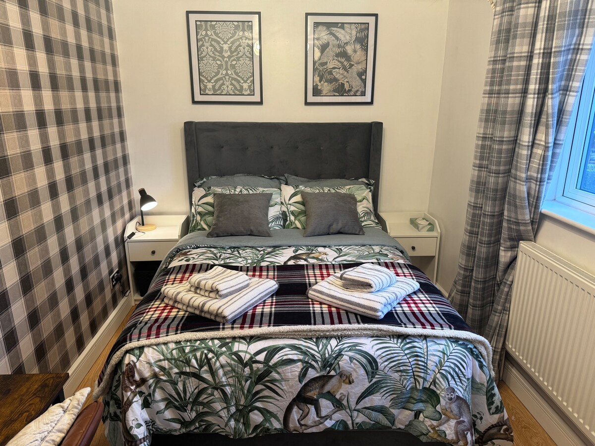 You will be comfortable in our house, full of character. Two upstairs bedrooms, with a king size bed & Freeview TV, and one with single (further beds on discussion); bathroom and downstairs shower room. Downstairs sitting room with microwave, toaster, kettle and fridge (no freezer), without a kitchen sink. Screen (no TV) available in sitting room with HDMI cable. Washing up service provided. This is all for your private use with your own front door, in effect a self contained unit.